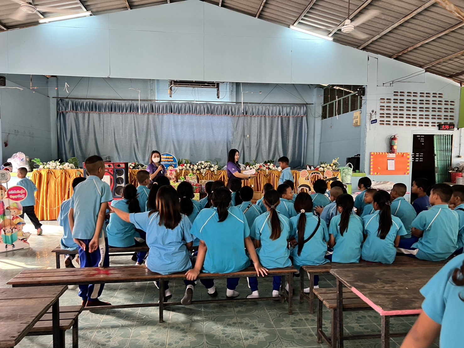 จัดโครงการส่งเสริมการอ่านเคลื่อนทีกับรถโมบาย เพื่อส่งเสริมให้เด็กและเยาวชนรักการอ่าน ณ โรงเรียนวัดบ้านไผ่ท่าโพใต้ หมู่ 3